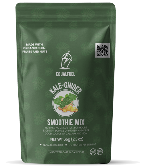 Fresh and invigorating, EqualFuel Kale-Ginger pairs earthy greens with a bright ginger kick for a modern, energizing green smoothie. With 17g of protein11g of fiber, and exceptional levels of Vitamin C (60%) and Vitamin K (90%), it boosts immunity, bone health, and metabolism — pure plant vitality in every sip.