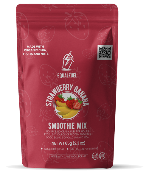 Smooth, creamy, and naturally sweet, EqualFuel Strawberry Banana combines real organic fruit with chia and whey protein for a familiar flavor that feels both comforting and refreshing. With 17g of protein13g of fiber, and 35% of your daily Vitamin C, it’s a nutrient-dense, immunity-supporting blend designed for balanced energy and all-day wellness.